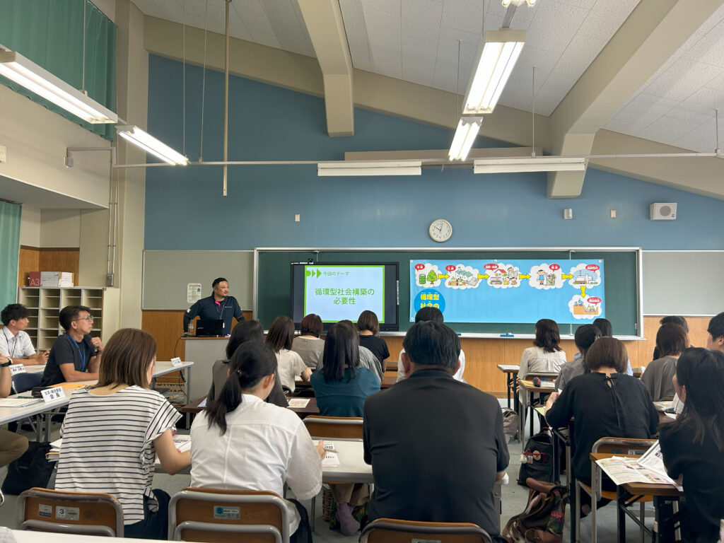 弊社が所属している熊本県産業資源循環協会と共同で、菊池郡市の教職員の方々を対象とした環境教育講座を開かせていただきました。