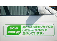 大津町の家庭・事務所・企業・学校PTAの保護者の皆さんや様々な人達のご協力で、要らなくなった天ぷら油(廃食油)を頂き、BDF(バイオディーゼル燃料)を精製し、軽油の代替燃料としてパトロール車に使用しています。