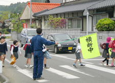 地元小学校の登校時間に、児童の安全確保のため、スクールゾーン2か所の横断歩道にて横断誘導のお手伝いをしています。
