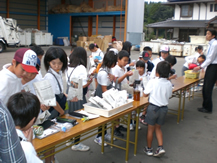 10月16日、護川小学校4年生の皆さんと一緒に「バイオディーゼル燃料の精製体験」と「菜の花パトロール」を中心とした環境学習会を行いました。また、PTAのお母さん達のお手伝いもいただき、私たちの菜の花オイルで作った大津町特産のからいもチップスもとても美味しくできました。